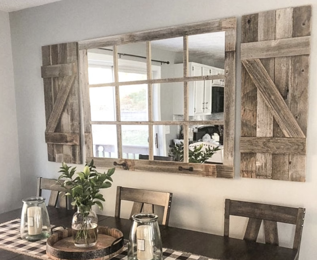 Farmhouse Rustic Wall Decor Mirror with Decorative Shutters